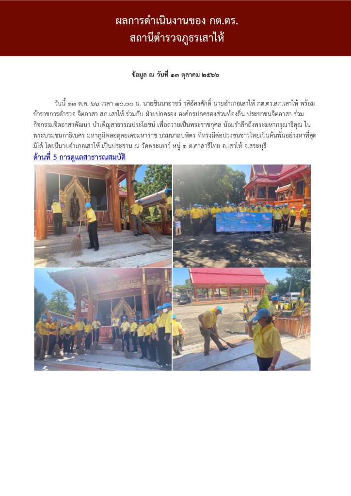 ผลการปฏิบัติงาน กต.ตร.สภ.เสาไห้ ต.ค.๖๖